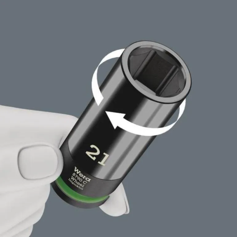 Wera Wheel Impactor C Set 1 on kolmiosainen 1/2″ -Impaktor-hylsysarja käytettäväksi sähkö- tai paineilmakäyttöisissä iskuvääntimissä. Kääntyvä ja vapaasti pyörivä muovipäällyste nopeaan työskentelyyn ja vanteiden suojaamiseen. Sisällä oleva muoviosa suojaa pyörän pultin pintaa.