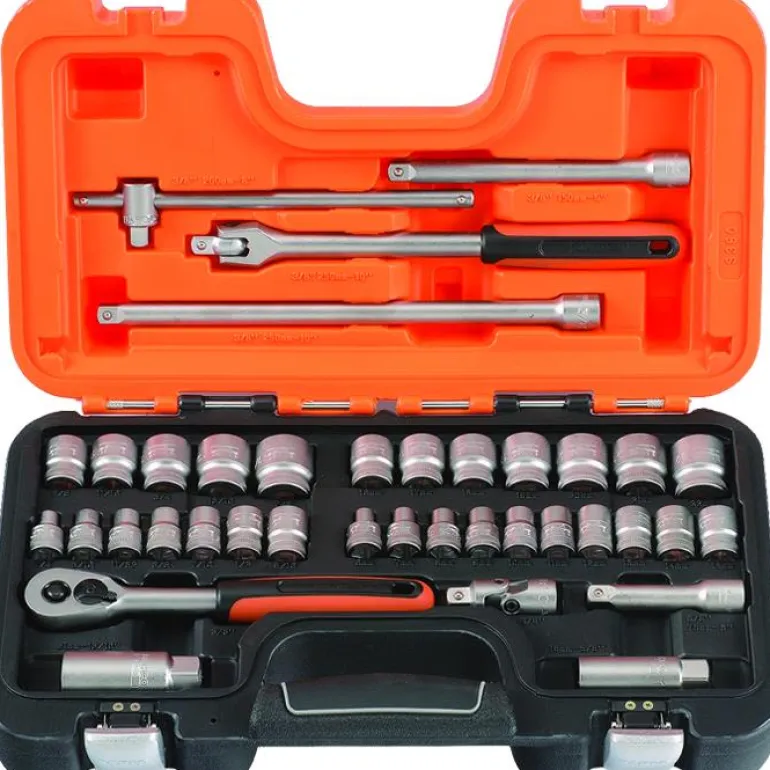 Hylsysarja, 38 osaa, esim. 12 kpl 3/8″ kuusiohylsyjä 1/4″, 5/16″, 11/32″, 3/8″, 7/16″, 1/2″, 9/16″, 5/8″, 11/16″, 3/4″, 13/16″, 7/8″ ja 17 kpl 3/8″ kuusiohylsyjä 6, 7, 8, 9, 10, 11, 12, 13, 14, 15, 16, 17, 18, 19, 20, 21, 22 mm jne.