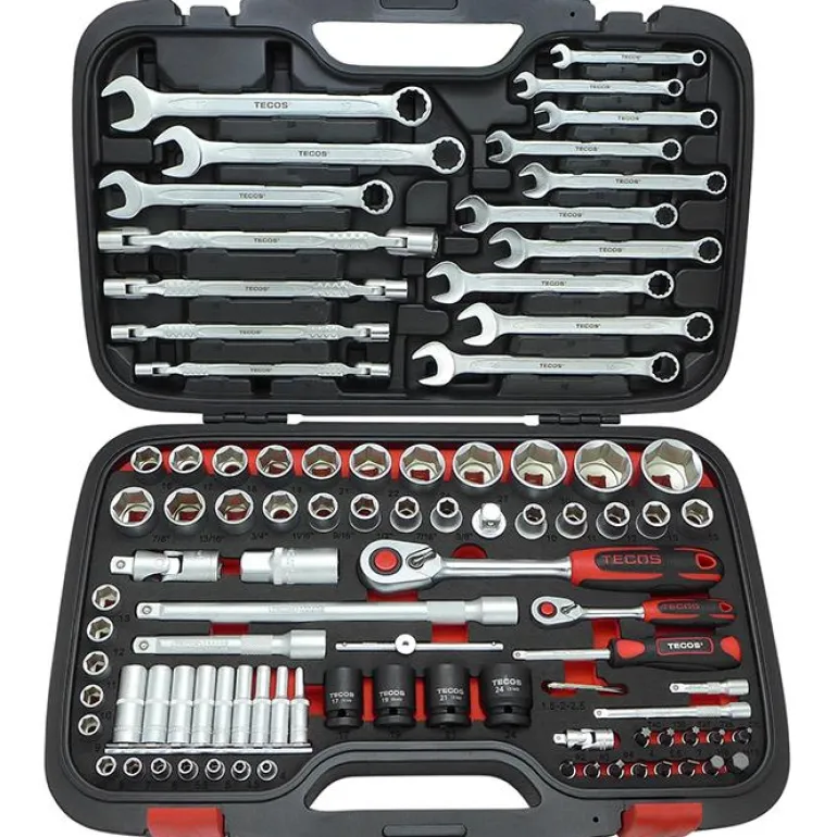 Tecos T-2094 Hylsysarja – 1/2″ + 1/4″ hylsyavainsarja 94 osaa. Täyttää standardin DIN/ISO sekä SAE