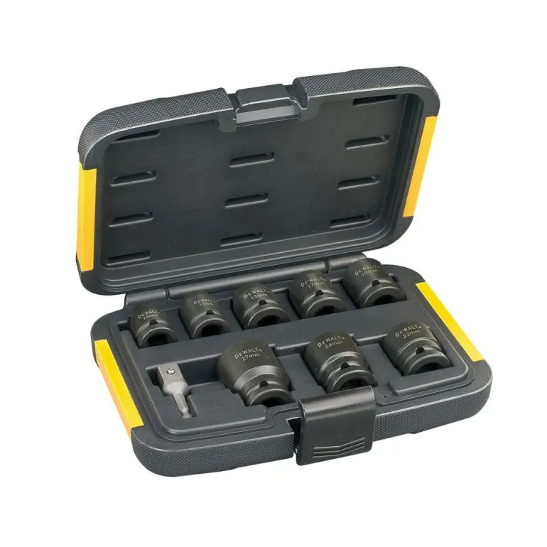 DEWALT DT7507-QZ on 9-osainen hylsysarja käytettäväksi mutterinvääntimien kanssa.