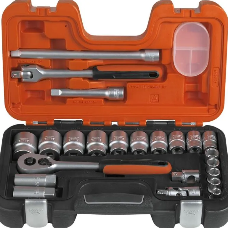 Ominaisuudet Hylsyavainsarja 1/2″ISO 1174DIN 3120Laadukkaat mattakromatut terästyökalutLaukku HDPE-muovia Sisältää 23 osaa: 15 kpl 1/2″:n Dynamic Drive -profiililla varustettuja tuumakokoisia kuusiohylsyjä (3/8″, 7/16″ (11), 1/2″, 9/16″, 5/8″, 11/16″, 3/4″ (19), 13/16″, 7/8″ (22), 15/16″, 1 1/16″, 1 3/16″, 1 1/4″)2 kpl 1/2″:n jatkokappale 125 ja 250 mm1 kpl 1/2″:n yleisnivel1 kpl 1/2″:n T-välikappale2 kpl 1/2″:n sytytystulppahylsyjä 6-kulma, 5/8″ (16 mm) ja 13/16″ (21 mm)1 kpl 1/2″ nivelkahva 250 mm kaksikomponenttikahvalla1 kpl 1/2″:n räikkäkahva, 60 hammasta ja kaksikomponenttikahva