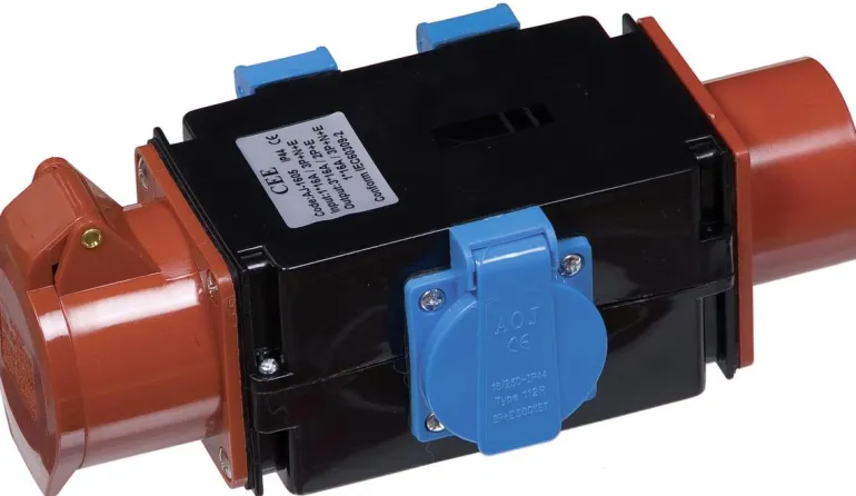 IEC-sovitin/haaroitusrasia. Syötetään 16A 400V CEE-pistorasiasta.