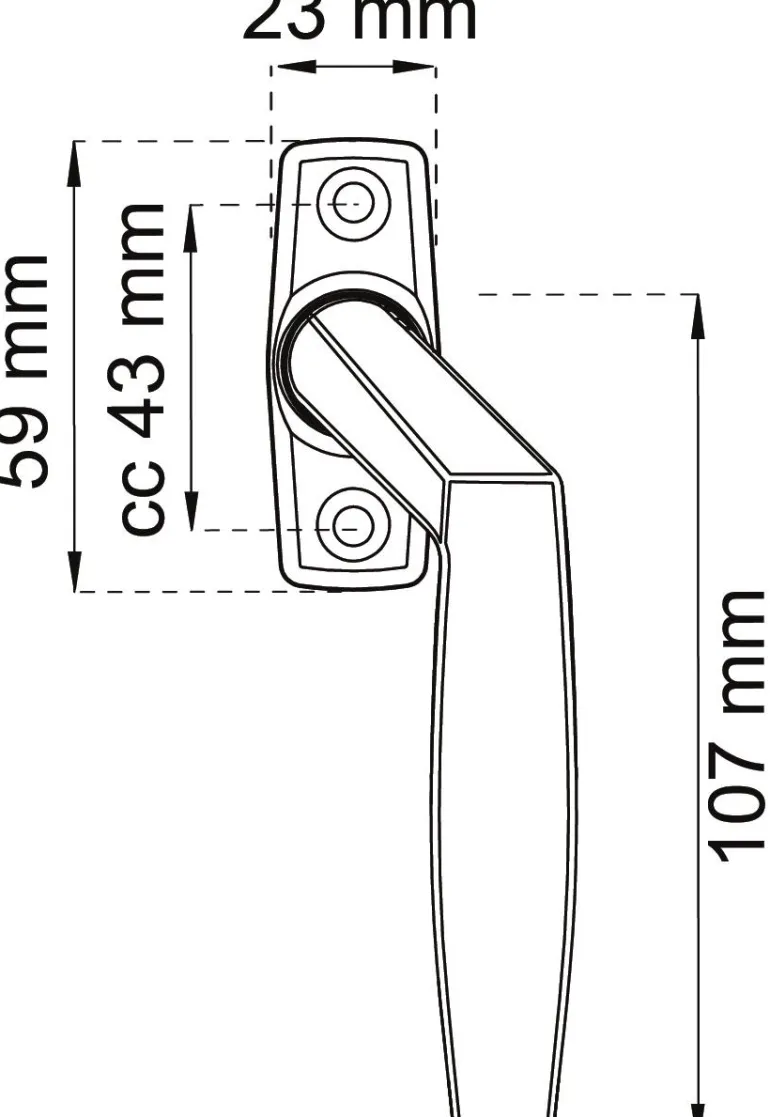 Ikkunan kahva kromattua sinkkiä, puristintappi 8×53 mm.