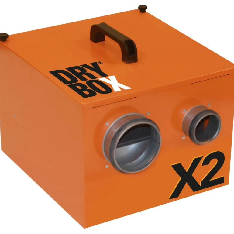 Adsorptiokuivain Drybox X2 koostuu adsorptiotuulettimesta, jossa on poistoilmakanava kostealle ilmalle ja kaksi ilmakanavaa kuivalle ilmalle. Tuuletin imee ilman ja poistaa siitä kosteuden. Kostea ilma johdetaan poistoilmakanavan kautta rakennuksen ulkopuolelle. Tämä luo alipaineen, joka parantaa ilmanlaatua koko rakennuksessa. Kuiva ilma kiertää kahden kuivan ilmakanavan läpi, eikä nestesäiliötä tarvita.