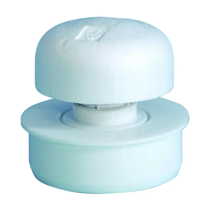 Ilmanpoistoventtiili, jossa on sovitin, jota käytetään viemäreiden ilmaamiseen ja jonka mitat ovat 50/75/110 mm.