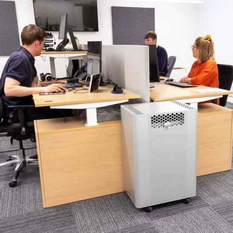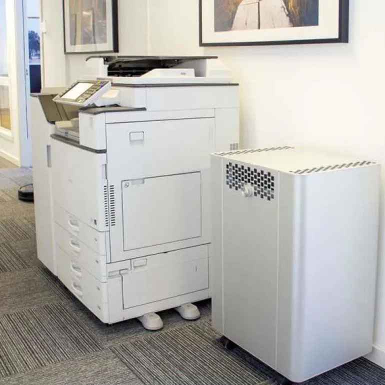 Pienempiin tiloihin, kuten toimistoihin tai huoneistoihin sopiva ilmanpuhdistin. Puhaltimen tilavuus on 520 m3/h ja se soveltuu jopa 150 m2 tiloihin.