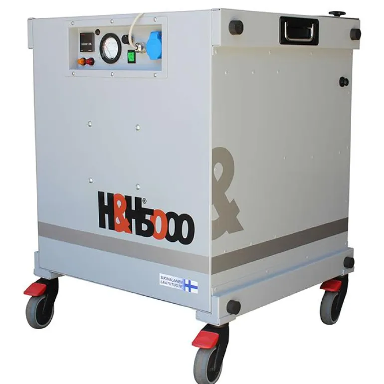 H&H H5000 on monitoiminen ilmanpuhdistin suurten toimisto- ja liiketilojen kunnostustöissä. Varustettu täysin säädettävällä nopeudella ja varoitusvalolla, joka varoittaa, jos jokin suodattimista on tukossa. Kone on varustettu myös ympäristöystävällisillä ja ekologisesti suunnitelluilla laatuturbiineilla ErP2015-direktiivin mukaisesti.