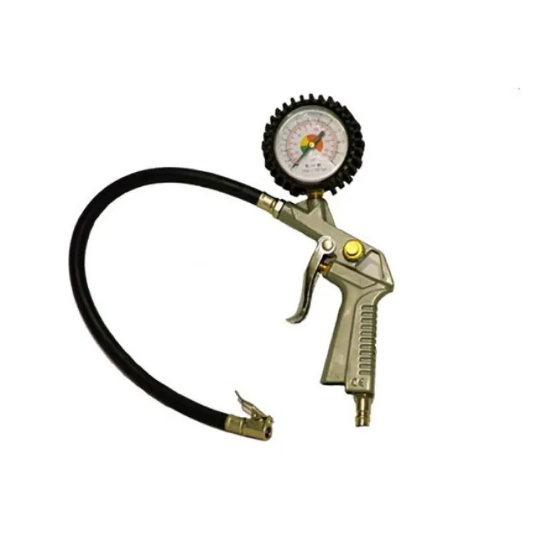 Ilmapumppu kumisella suojakuorella. Ilmalaite ja kiinnitysnipat venttiilin ja nanometrin kiinnitykseen. Kestää 0-10 barin paineen.