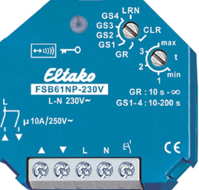 1+1 ei potentiaalvapaita No-koskettimia 4A/250V AC rullakaihtimien ja markiisien ohjaamiseen. Käyttö-, ohjaus- ja ohjausjännite paikallisesti 230 V.