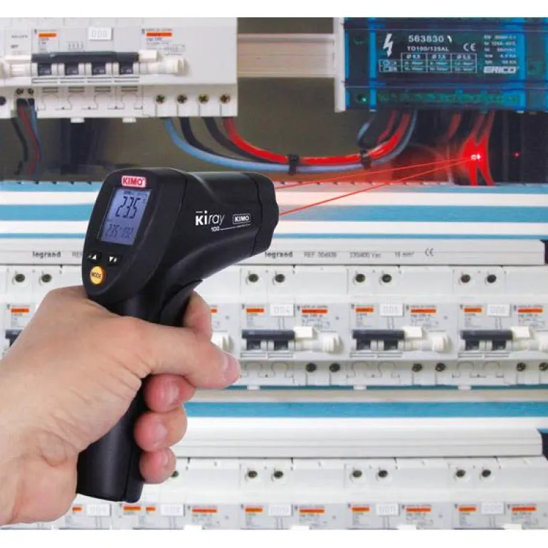 Kimo Kiray 100 on nopeatoiminen ja vankka infrapunalämpömittari, jossa on laserkohdistin. Kahden pisteen laserkohdistin ilmaisee mittausalueen koon.