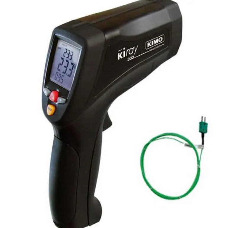 Kimo Kiray 300 on infrapunalämpömittari, jolla on suuri mittausalue –50…+1850 °C. Lämpömittarissa yhdistyvät infrapunamittauksen ja perinteisen pintamittauksen edut. Infrapuna-anturin 50:1-optiikka skannaa nopeasti suuret pinnat, ja ulkoinen anturi mittaa esimerkiksi ilman, nesteen tai putken pinnan lämpötilan.