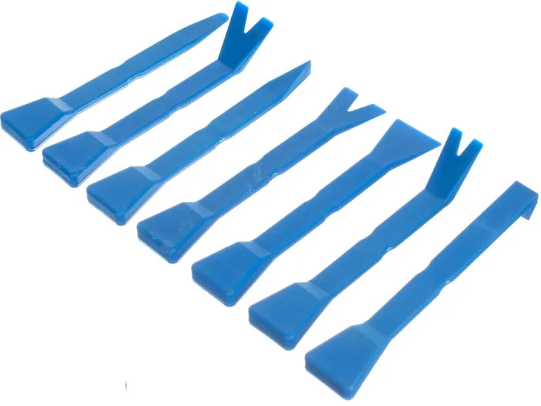 PELA 489239 on irrotus-/asennustyökalusarja kromiliuskojen, ikkunoiden, kumiyksityiskohtien, tunnusten ja muun kiinnittämiseen autoon vahingoittamatta maalipintaa. 7 eri muotoa. Nailonia.
