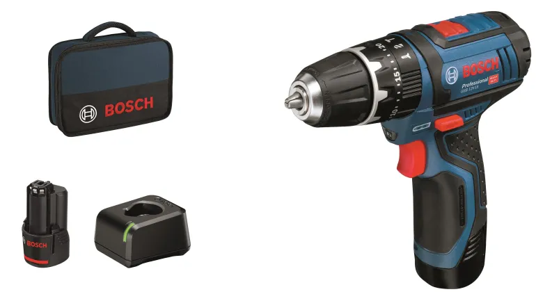 Electronic Cell Protection (elektroninen kennojen suojaus) suojaa ylikuormitukselta, ylikuumenemiselta ja syväpurkautumiselta. Iskuporaustoiminnon kanssa tämä työkalu soveltuu poraamiseen puuhun (terän maks. halkaisija 19 mm), teräkseen ja kiviseinään (maks. 10 mm) sekä ruuvaamiseen (ruuvin halkaisija maks. 7 mm). Mallissa GSB 12V-15 Professional on myös 2 vaihdetta, Autolock, lataustilan näyttö, Electronic Motor Protection (elektroninen moottorisuoja) ja litiumioniakku.