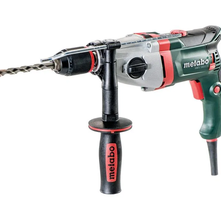 Metabo SBEV 1300-2 S on 1300 W:n iskuporakone, maks. vääntömomentti 44/16 Nm. Kytkettävä iskutoiminto tiukasti kiinni olevien ruuvien avaamiseen sekä sileiden pintojen poraamiseen Lisäksi Metabo SBEV 1300-2 S:ssä on ylikuormitussuoja ja hiiliharjojen kulumisilmaisin.