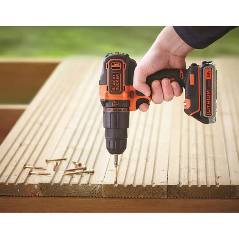 Black & Decker on 18 V iskuporakone, jonka vääntömomentti on 40 Nm ja iskunopeus enintään 21000 lyöntiä minuutissa. Tehokas iskutoiminto tekee betonin ja muurauksen poraamisesta helppoa. 10 vääntömomenttiasetusta tarjoavat suorituskyvyn, jota tarvitset hallittuun poraukseen ja ruuvitaltaan.