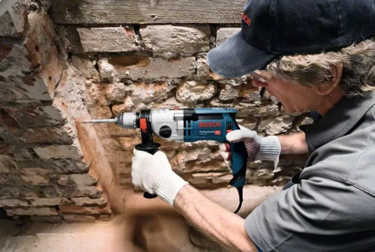 Bosch GSB 24-2 Professional on 2-vaihteinen sähkökäyttöinen iskuporakone KickBack Control-toiminnolla, suunniteltu vaativimpiin töihin. Tarkoitettu poraamiseen tiiliseinään, kivimateriaaliin, puuhun ja metalliin.
