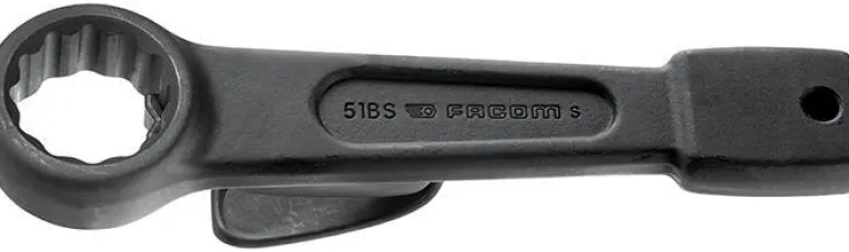 Facom 51BS.46 on iskurengasavain, avainkoko 46 mm, integroitu turvakädensija, joka kiinnitetään avaimeen ruuvilla.