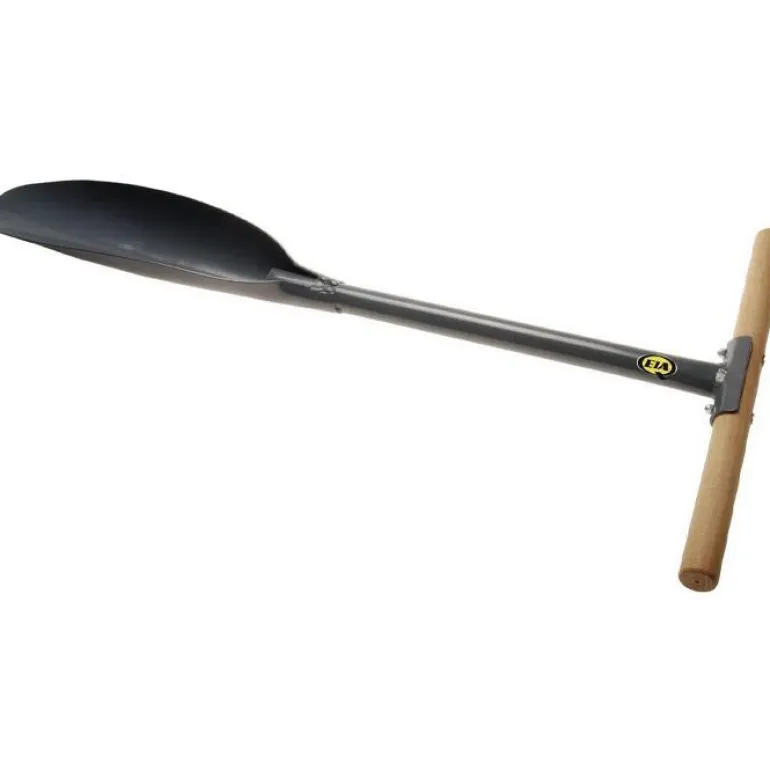 Istutuspora havupuiden taimien istuttamiseen. Terä karkaistua terästä ja varsi teräsputkea. Puinen T-kahva.