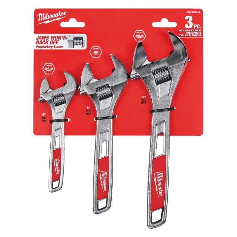 3-osainen jakoavainsarja jakoavaimilla, joissa ergonomiset pyöristetyt kahvat ja kromipinnoite joka suojaa kulumiselta ja ruostumiselta.