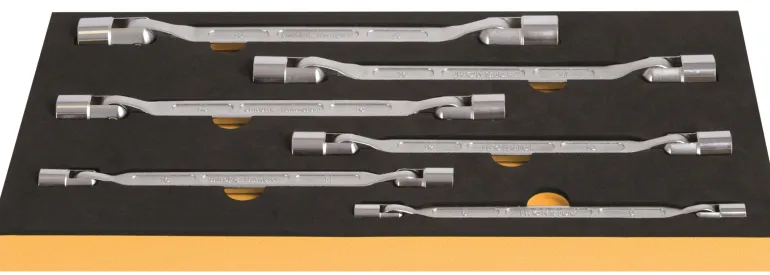 Nivelhylsyavaimet 6 osaa. Materiaali kromattua kromivanadiiniterästä. Ohutseinämäiset, 12-kulmaiset hylsyt käännettävissä 180º.