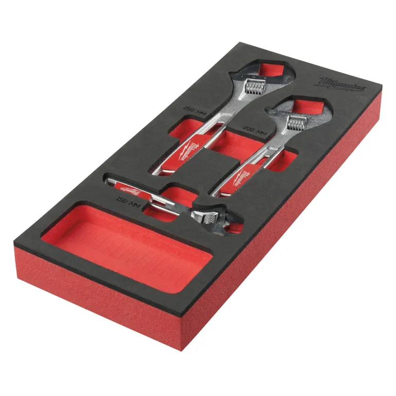 Milwaukee 4932492397 on sarja jakoavaimia, joissa säätöruuvi tarkoilla kierteillä ja pienillä toleransseilla sekä tehokkailla leuoilla. Rinnakkaiset leuat eivät lipsu eivätkä vahingoita valmiita pintoja. Ergonominen pyöristetty kahva parantaa työskentelymukavuutta ja ohut pään muotoilu mahdollistaa pääsyn ahtaisiin tiloihin. Kromipinnoite suojaa ruosteelta ja lisää kestävyyttä sekä pysyvät lasermerkityt tuuma- ja millimetrimerkinnät parantavat tarkkuutta. Varustetut ripustusreiällä. Sisältää pituudet: 150 mm, 200 mm, 250 mm. Vaahtomuovialustalla kätevää säilytystä varten.