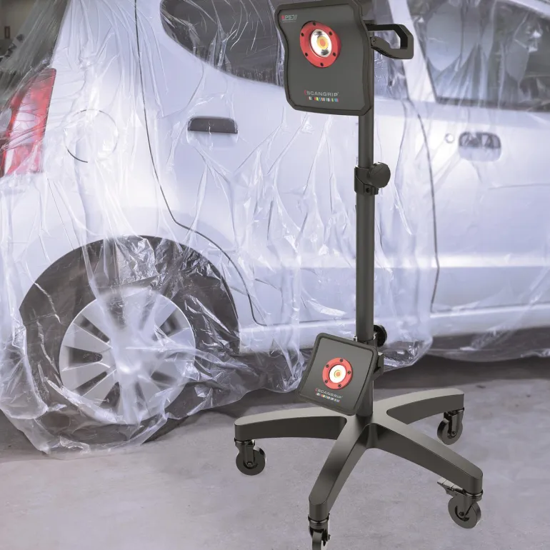Pyörillä varustettu ja helposti liikuteltava jalusta Scangripin työvalaisimille. WHEEL STAND helpottaa valaisimen/valaisimien siirtämistä haluttuun paikkaan. Mallia on päivitetty uudella tukevammalla alaosalla. Kaksi pyöristä on lukittavissa ja jalusta on varustettu lisäkiinnikkeellä, joka mahdollistaa toisen valaisimen sijoittamisen alhaaltapäin valaisevaksi. Lisäkiinnike on säädettävissä korkeussuunnassa.