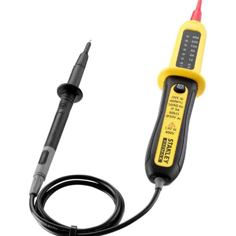 Jännitetesteri, IP54-luokitus suojaa pölyltä ja vesiroiskeilta. Vikavirtasuoja (RCD), jonka avulla virta katkeaa heti vian ilmetessä. Kompakti muotoilu, helppokäyttöinen.