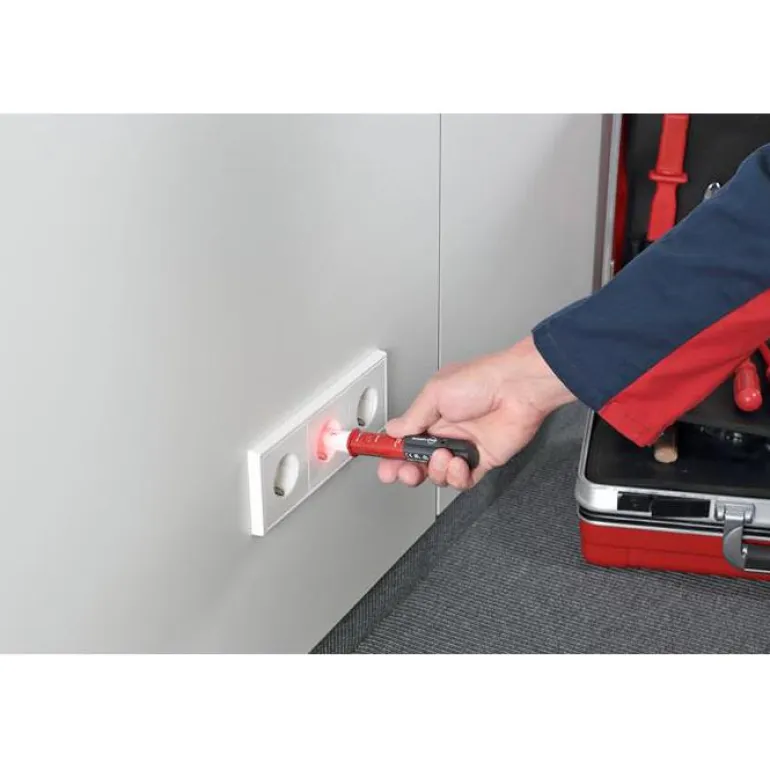 Kosketukseton jännitteenilmaisin, jännitealue 50-1000 V AC, 50-400 Hz. Vaihtojännitteen havaitsemiseen sähköjärjestelmää häiritsemättä.