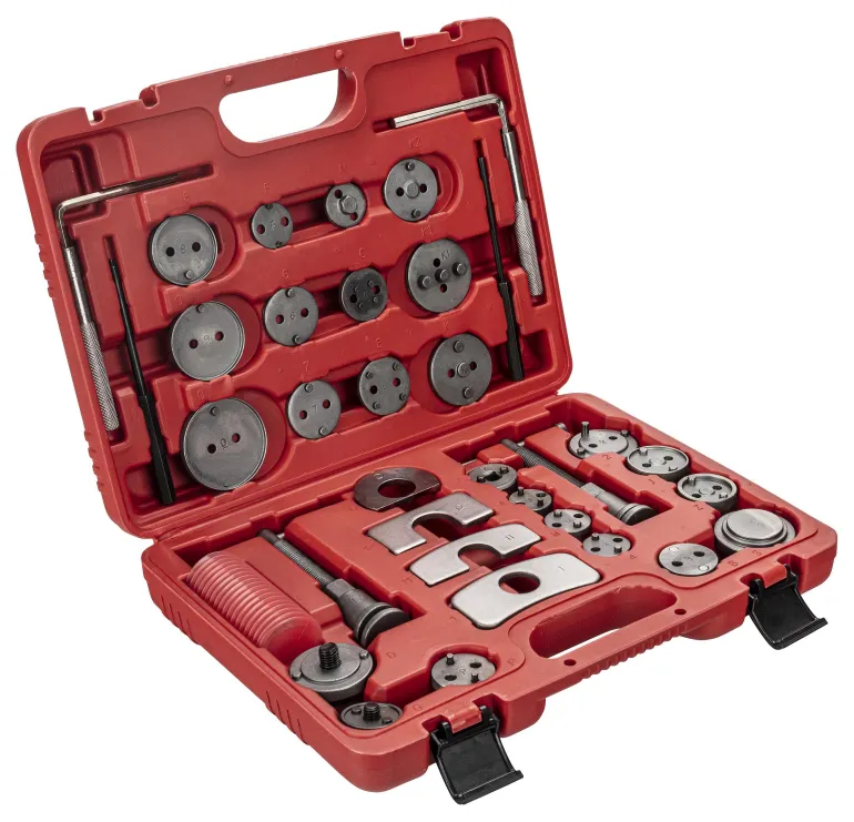 Pela 487673 on 37-osainen jarrumäntätyökalusarja vasen- ja oikeakierteisten jarrumäntien sisääpainamiseen jarrupalojen vaihtamisen yhteydessä. Sisältyvät adapterit sopivat laajalle kirjolle ajoneuvoja. Vasenkierteisille jarrumännille tarkoitettu työkalu on sopiva Ford, Citroën ja Renault-merkkien sovelluksiin. Adapterilevyjen ja jarrumäntätyökalun tarkkuus auttaa ehkäisemään vahinkoja männille tai tiivisteille. Tämä päivitetty työkalusarja sopii viimeisimmille ajoneuvomalleille.