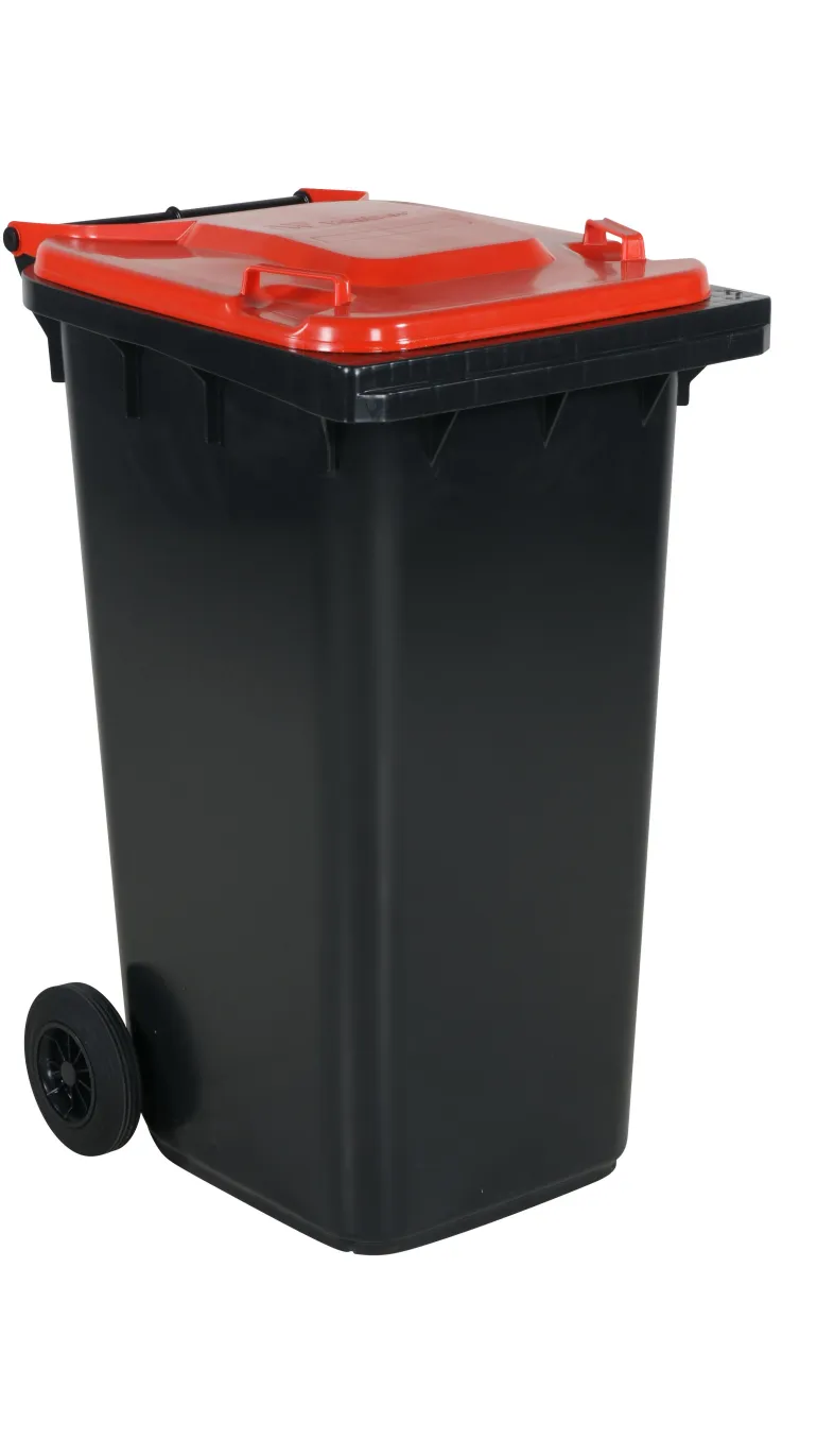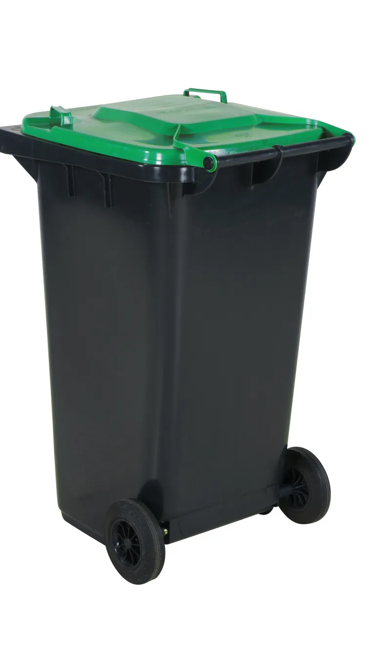 Tukeva HDPE-roska-astia. Helppo puhdistaa. Kumipyörät, teräksinen pyöränakseli. Valmistettu muotoon puristetusta polyeteenistä (HDPE). Kestää lämpöä, kylmyyttä, kemikaaleja, UV-säteilyä yms. Saatavana koot 120 l, 240 l ja 360 l. Sopii öljyisille jätteille, kuten räteille ja öljynsuodattimille, sekä lasille, paperille, muoville, metalleille ja roskille. Täyttää TUV-standardit.
