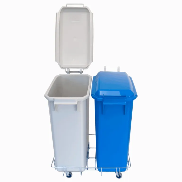 Jäteastian alusta kahdelle 60 l roska-astialle (Patricia). Sinkkipinnoitettua metallia, kevyesti pyörivät kumipyörät. Pinottavassa alustassa on vankat pyöräkiinnikkeet.