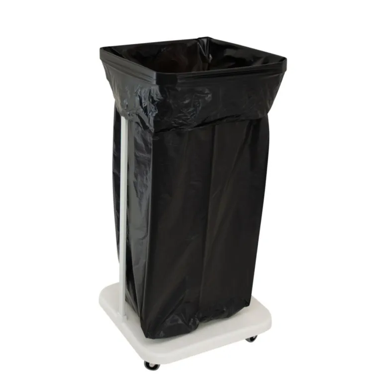Jauhemaalattu roskapussiteline, jossa pyöristetyt kulmat. Voidaan nostaa ja helppo tyhjentää. Voidaan myös täydentää kannella ja/tai kyltin pidikkeellä. 125-150 l säkeille, 50 mm kumipyörillä.