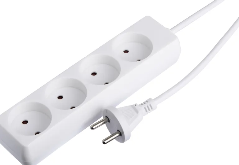 Suorakulmion muotoinen jatkojohto kestomuovista. Johdon pituus 1,5 m.