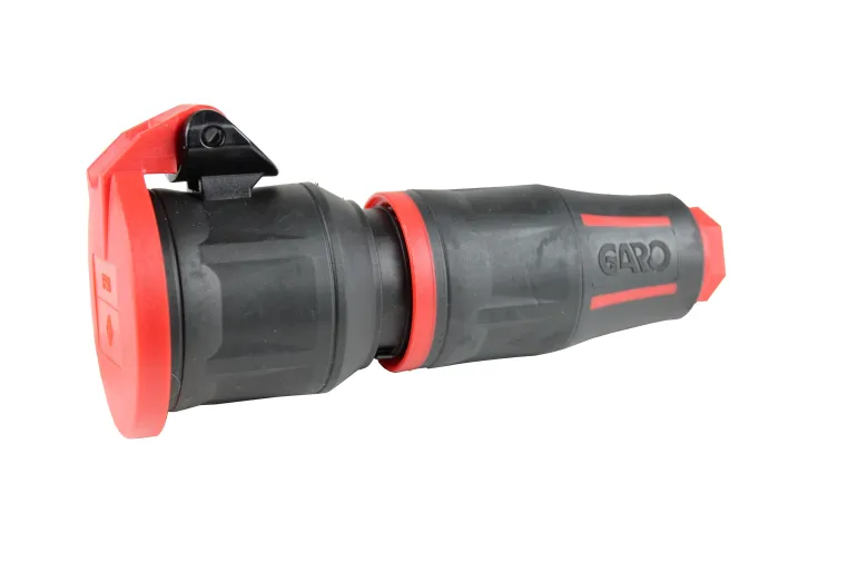 Garo SSDGL 216 on liitospistorasia, jossa on kiinteä kumikotelo ja ulkoinen jännitteenpoisto. Suora vetokulma ja 2 napaa.