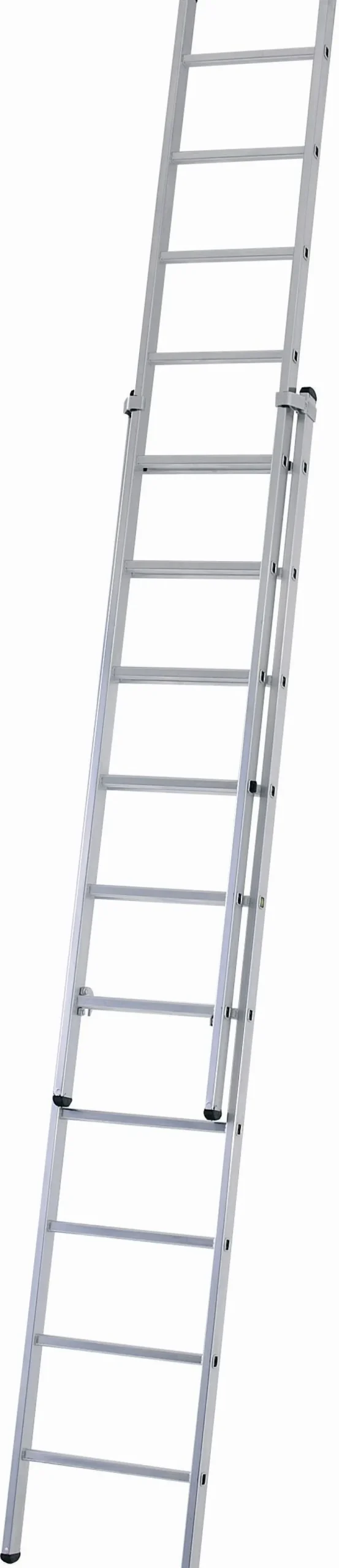 Erityisen leveät alatikkaat (490 mm) lisäävät vakautta. Kätevä ja tarkka korkeudensäätö 280 mm:n välein puolalta toiselle. Tikkaiden molempia osia voidaan käyttää myös erikseen nojatikkaina. Puolat ja sivutuet ovat puristettua alumiiniprofiilia. Muovinen liukuestesuojaus ja nostosuoja. Vaihdettava luistamaton kaksikomponenttimuovista valmistettu liukueste, joka kiinnitetään tukevasti tikkaan reunoihin. Myös ylätikkaissa on liukuestesuojaus.