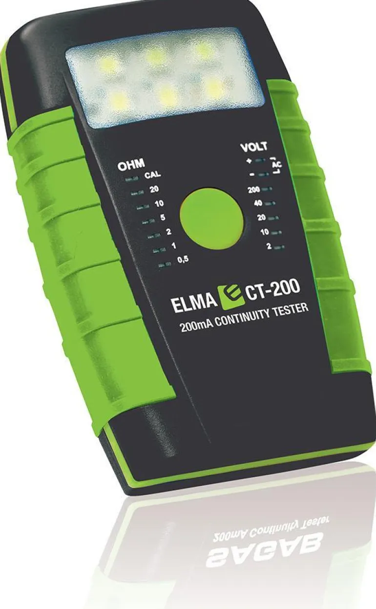 Elma CT-200 on kätevä, kestävä ja erittäin tarkka jatkuvuustesteri, jossa on sisäänrakennettu jännitetesteri ja tehokas taskulamppu. Laite on ihanteellinen suojajohtimien ja potentiaalintasausjohtimien tarkastamiseen.
