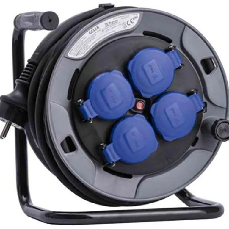 Johtokela 15 m kumipäällysteisellä johdolla (H05RR-F). Pistokkeissa on itsestään sulkeutuvat kannet ja lämpösulake, ja se on hyväksytty ulkokäyttöön -25°C asti. Varustettu neljällä 230V 16A pistokkeella.
