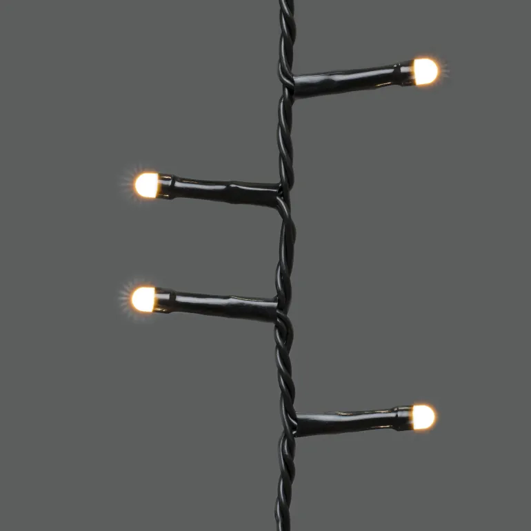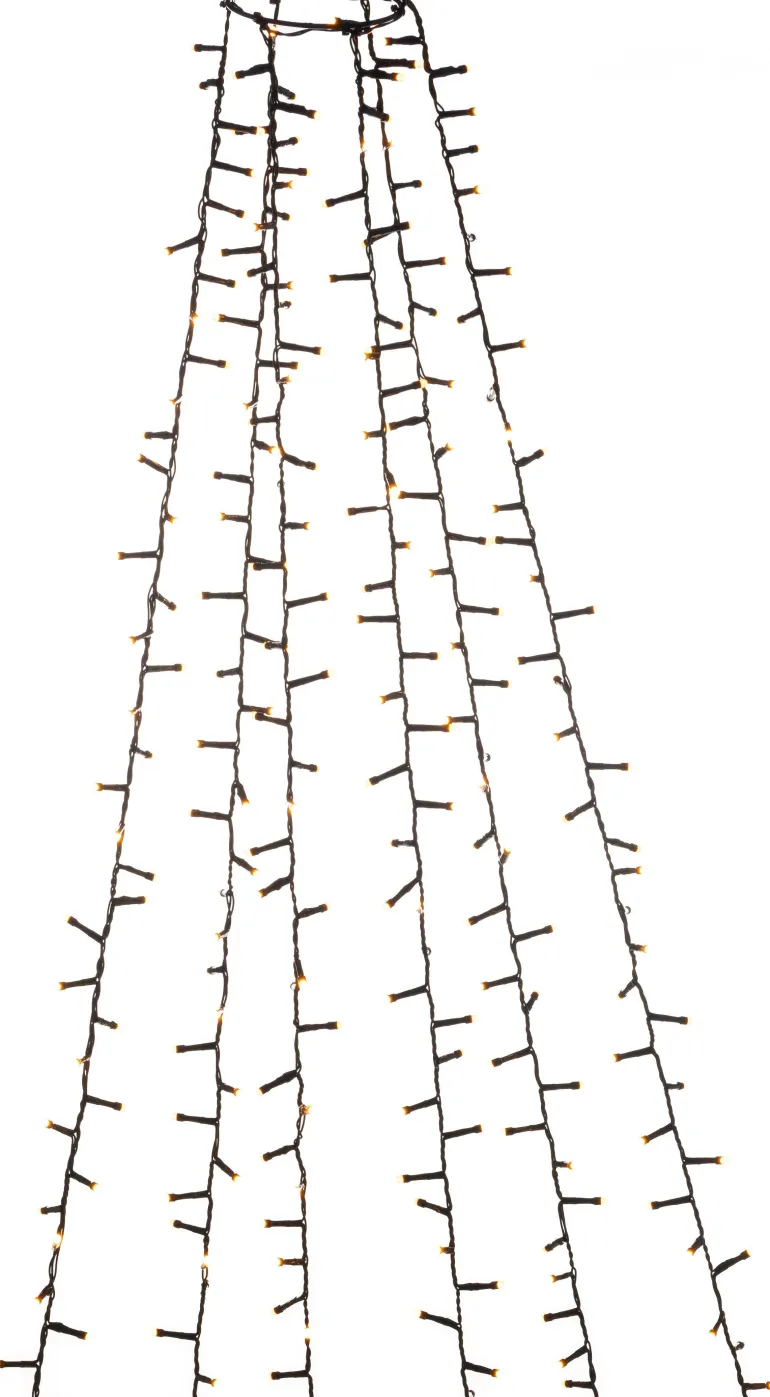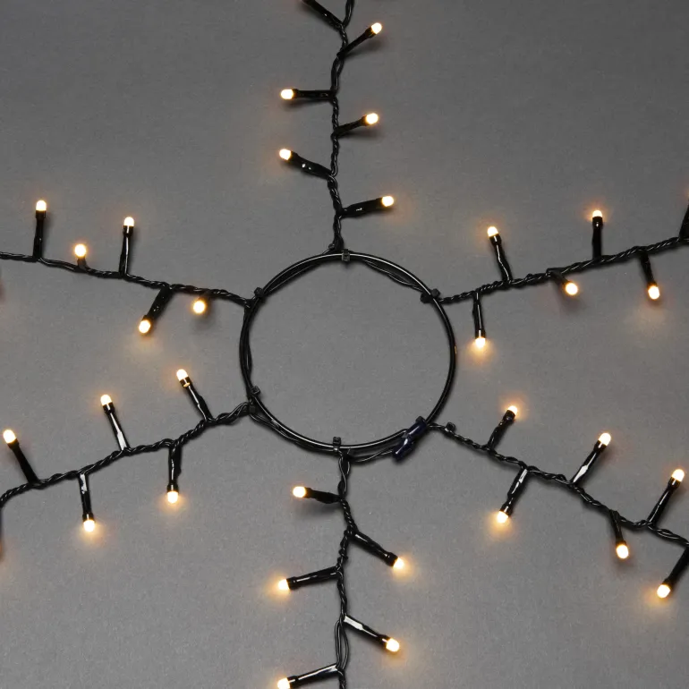 Konstsmide 6651-830 on valosarja joulukuuselle, jossa on 180×6 amber-väristä LEDiä (cluster/huurrettu). Musta johto, ajastin 8 h.