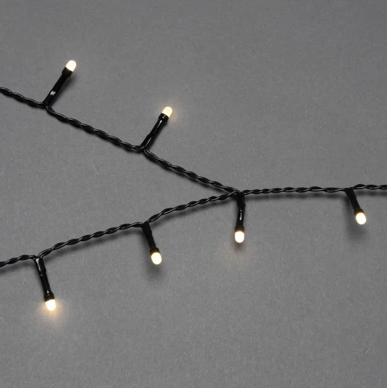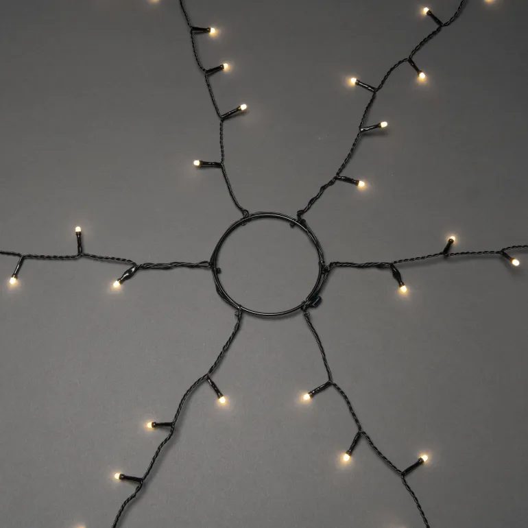 Konstsmide 6660-130 on valosarja joulukuuselle, jossa on 45×6 huurrettua lämpimän valkoista LEDiä. Musta johto, ajastin 8 h. 9V/IP44.