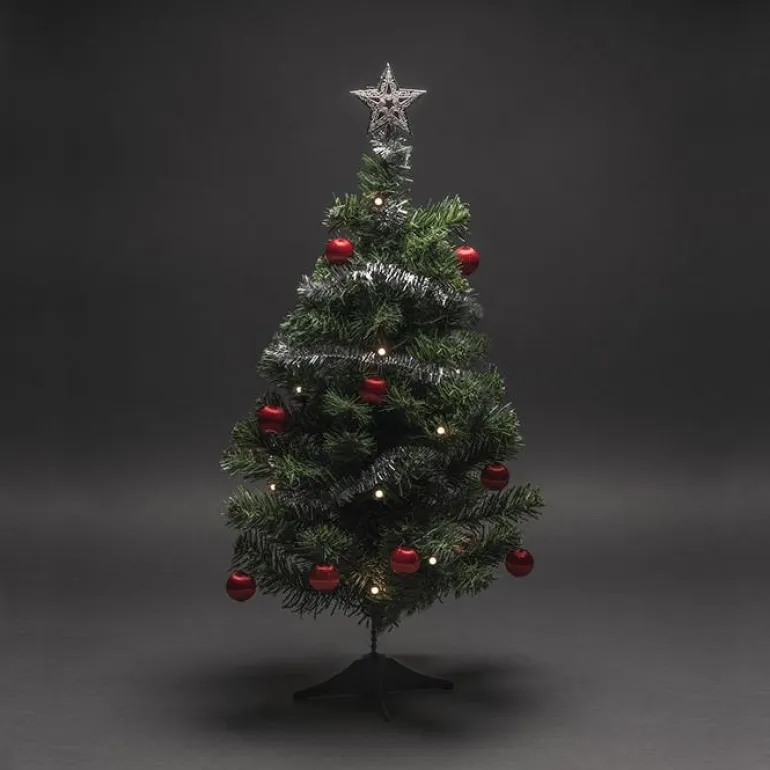 Konstsmide 1208-010 on joulukuusi, jossa on koristeet ja valosarja. 58 cm korkea.