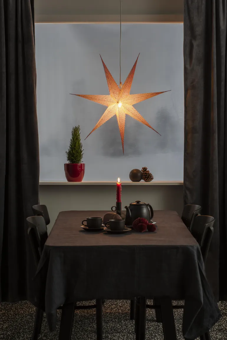 Konstsmide 5901-550 on paperitähti 78 cm, punainen. 7-sakarainen tähti, johdollinen.