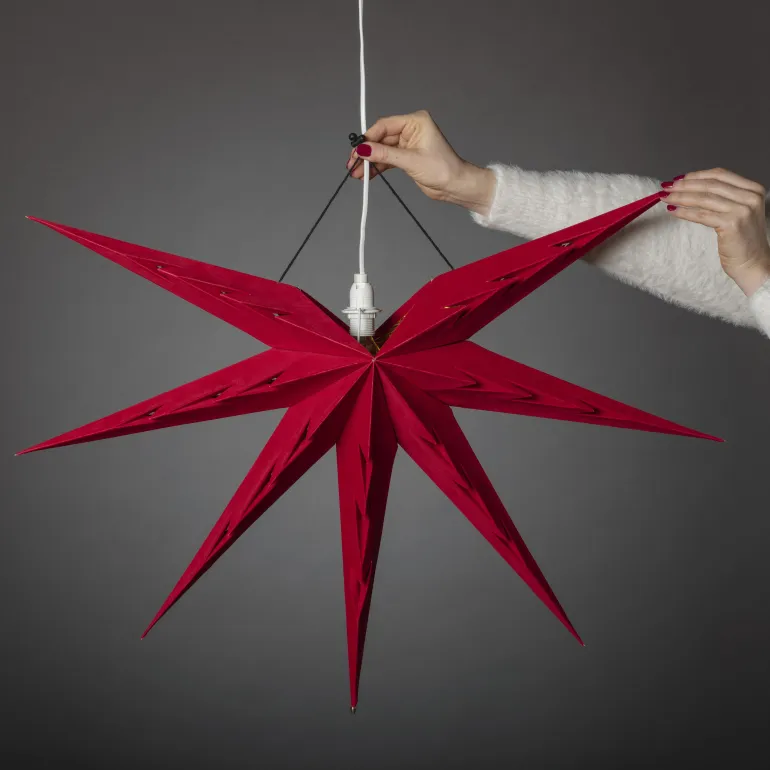 Konstsmide 5952-550 on paperitähti. 60 cm, punainen. 7-sakarainen tähti (samettia), johdollinen.