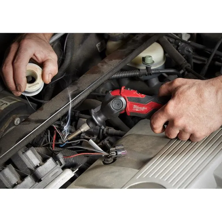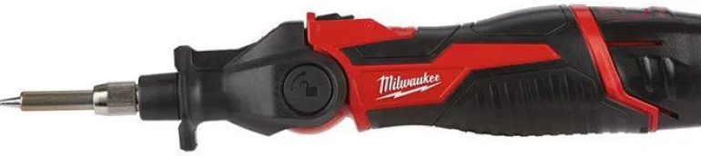 Milwaukee M12 SI-201C on 12 V:n juotin, jonka pää on lukittavissa kolmeen asentoon, jolloin juotinta voidaan käyttää halutussa kulmassa: 0°/45°/90°. Käyttövalmis 20-30 sekunnissa.