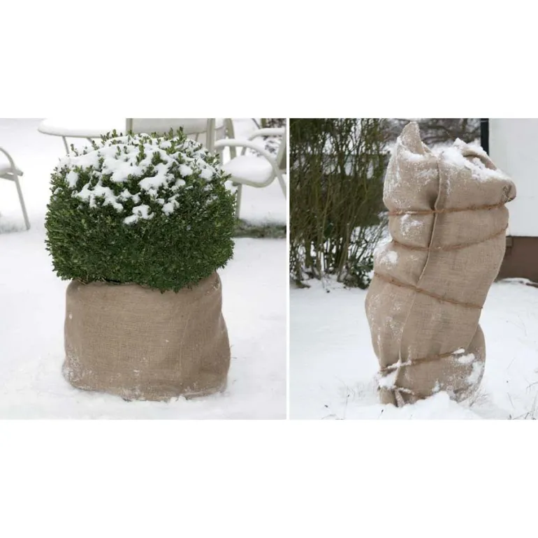 Juuttikangas ruusujen, pensaiden ja puiden peittämiseen. Suojaa pakkaselta ja lumelta sekä voimakkaalta auringonpaisteeltakin, myös kuivuudelta keväisin.