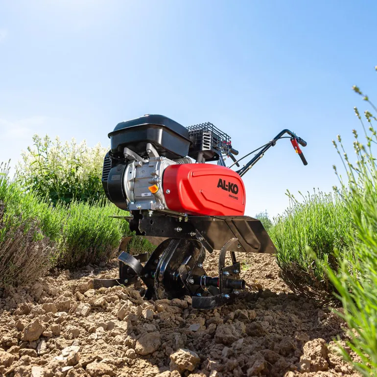 AL-KO MH 540 on 54 cm:n työskentelyleveydellä varustettu vahva jyrsin, jota suositellaan jopa 300 m²:n työskentelyalueille. Neljä terää, joiden halkaisija on 30 cm, takaavat jopa 33 cm:n muokkaussyvyyden. Nopeutta ja syvyyttä voidaan säätää kolmiportaisella teräkannuksella.