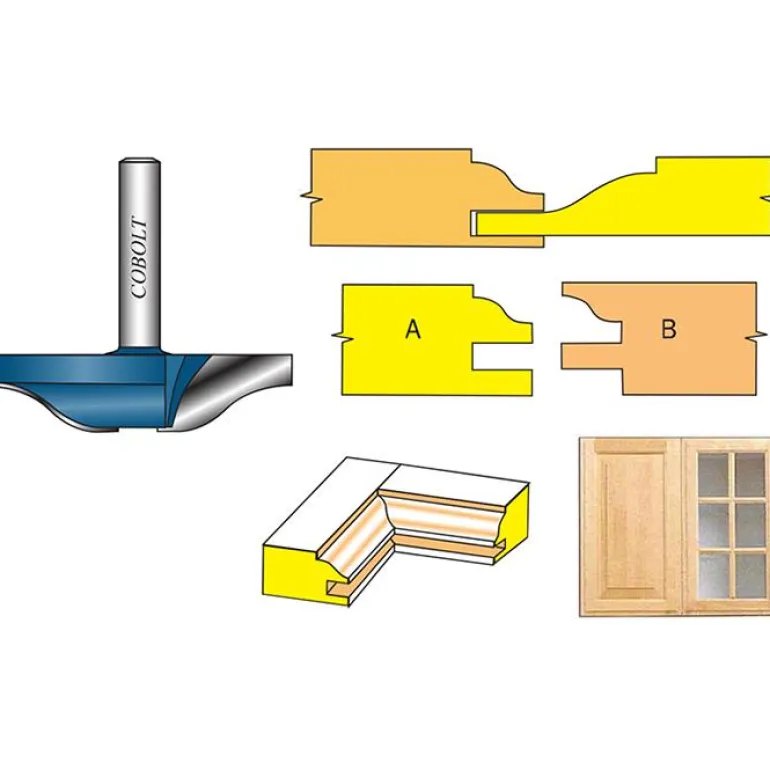 Täydellinen Cobolt-jyrsinteräsarja kaapin ja keittiönkaapinovien ja kelluvien peilien valmistukseen.