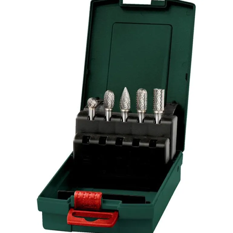 Metabo 628403000 on 5-osainen jyrsinteräsarja. Ristihammastettu kovametallijyrsin yleiskäyttöön. Ristihammastus helpottaa työtä ja parantaa hallintaa. Jyrsimien varsien halkaisija on 8 mm.