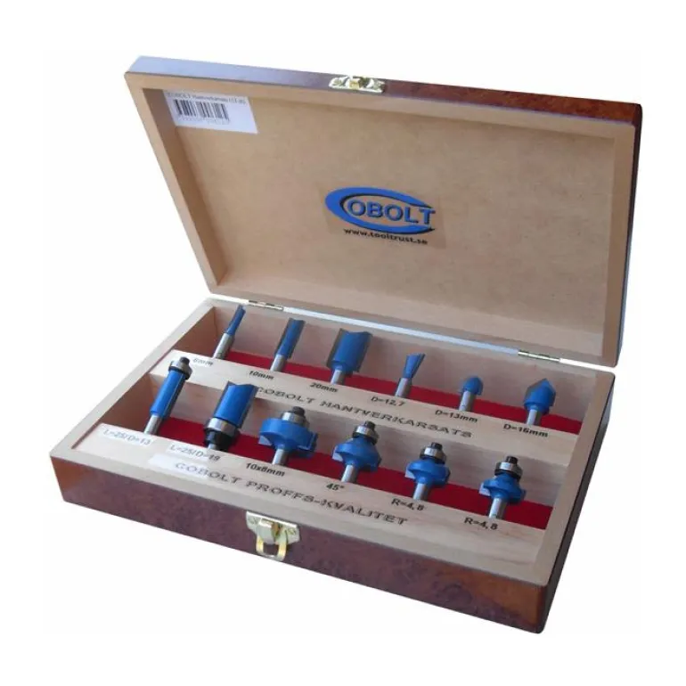 Cobolt Käsityöläisen sarja 12 osassa, joissa on erityisesti valitut kovametallijyrsimet tavallisimpia jyrsintätoimia varten.