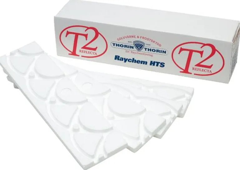 Raychem T2Reflectassa on 6 ylimääräistä kääntölevyä T2Reflecta-lattialämmitysjärjestelmään. Pakkaus sisältää 6 kääntölevyä, joiden koko on 0,4×0,1 m. Levyt on valmistettu EPS:stä ja niissä on valmiit urat T2Red-lämmityskaapelille. Levyjä käytetään T2Redin kääntämiseen lattian ulkopäissä. Levyt ovat 13 mm korkeita.