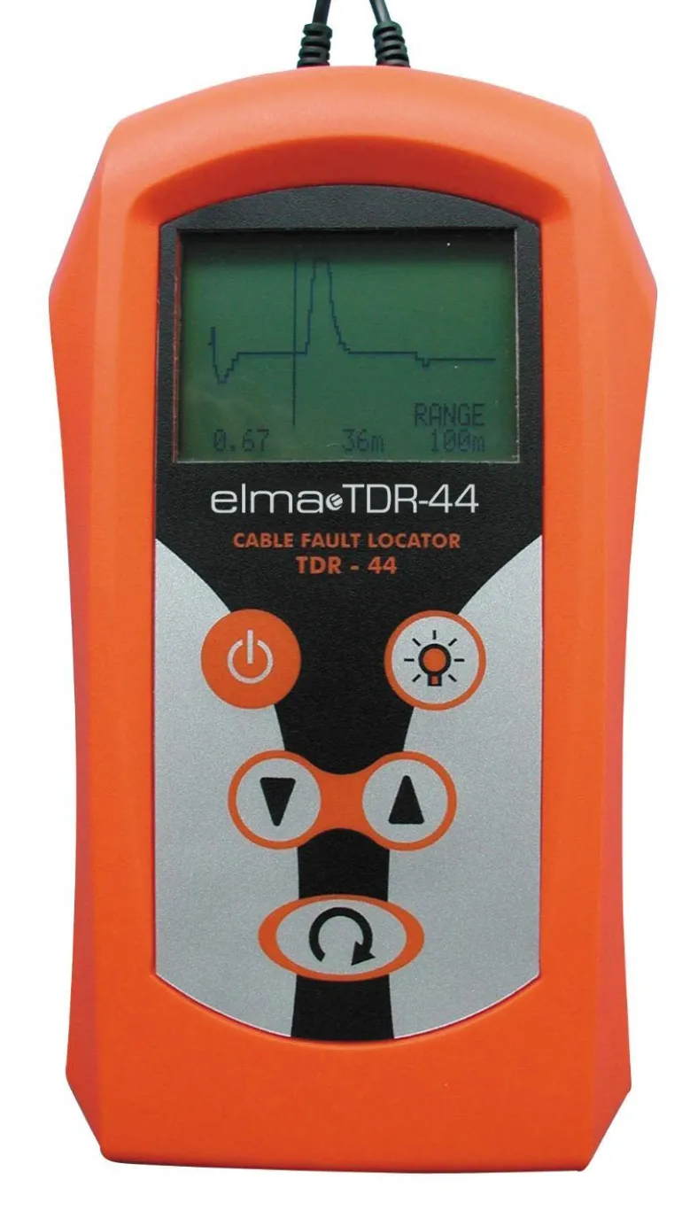 Kaapelin vianpaikannin/pituusmittari. Toimii kuten TDR:llä (TimeDomaine Reflectometer) varustetut tunnetuimmat kaapelin vianpaikantimet. Elma TDR-44:n avulla löydät nopeasti oikosulut, katkokset sekä määrität kaapelin pituuden jne. Laitetta voidaan käyttää kaiken tyyppisille kaapeleille aina 3 km:iin asti.